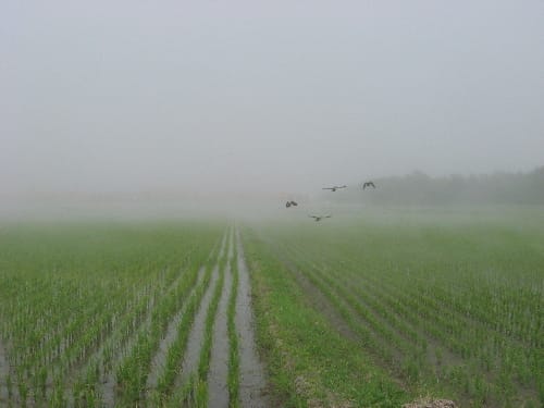 今朝は、気温差から朝霧が発生していました。